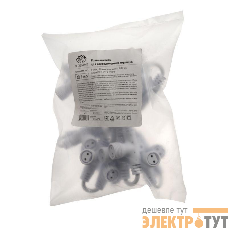 315-407 | Разветвитель-шина для уличных гирлянд Professional (1 вход 20 выходов) бел. ПВХ Neon-Night