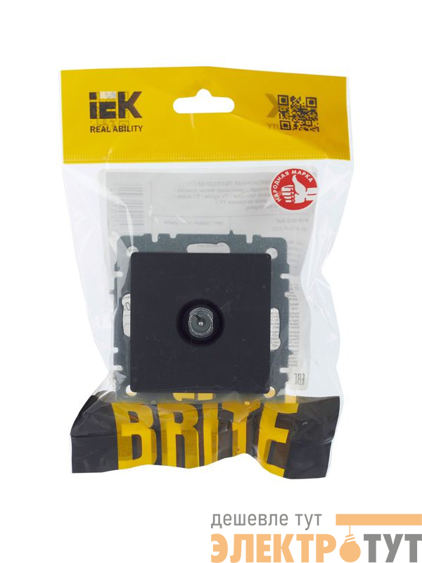 | Розетка телевизионная проходная TV СП Brite РТВ10-0-БрГ механизм графит IEK BR-A10-P-K53