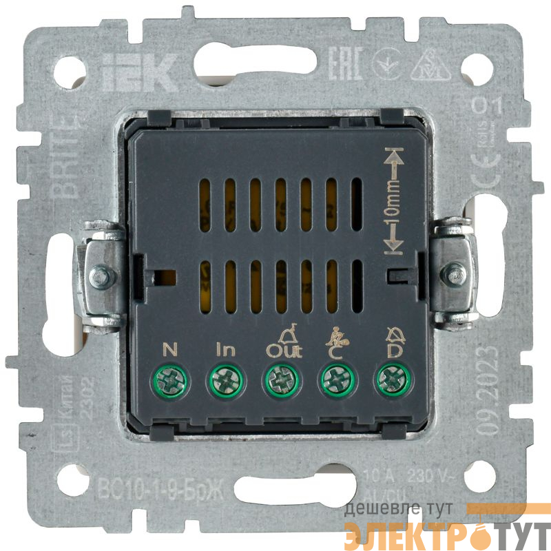 | Кнопка звонка BRITE 10А ВС10-1-9-БрЖ для отелей с индик. механизм жемчуж. IEK BR-V14-2-10-K36