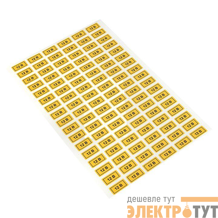 Представляет собой предупреждающий знак с нанесенной на нем надписью "12 В". Прямоугольный, 15 х 10 мм, надпись на желтом фоне черными символами, с клейкой основой.