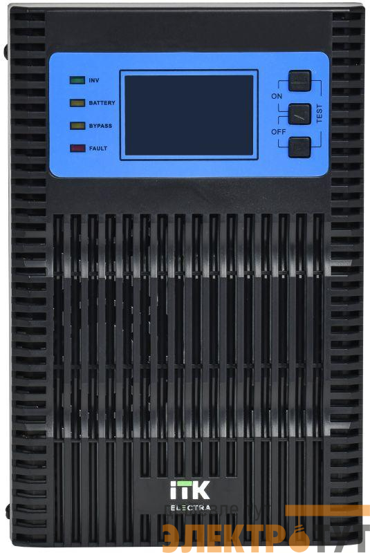ITK ELECTRA OT – онлайн напольные ИБП. Оснащен расширенным зарядным устройством и 4 розетками C13 и клеммной колодкой. Имеет встроенное программное обеспечение, через которое можно осуществлять мониторинг состояния ИБП, удалённо включать или выключать устройство. Поддерживается интерфейс SNMP, что даёт возможность связи с ИБП через локальную сеть.