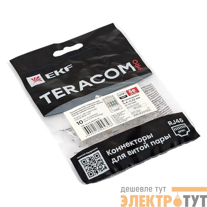 Коннектор RJ45 (8P8C) кат.5E неэкранир. 30мкд универс. (уп.10шт) TERACOM PRO EKF TRP-PLUG-5EUTP-10