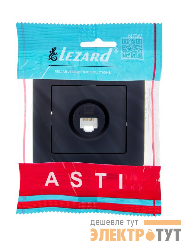 7081-4242-139 | Розетка компьютерная 1-м СП ASTI IP20 RJ45 в сборе Cat 5e черн. бархат LEZARD