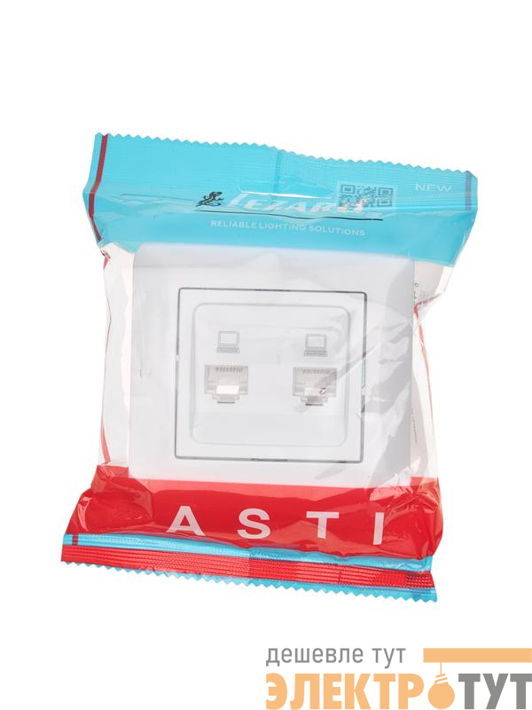 7081-0202-141 | Розетка компьютерная 2-м СП ASTI IP20 RJ45 в сборе бел. LEZARD