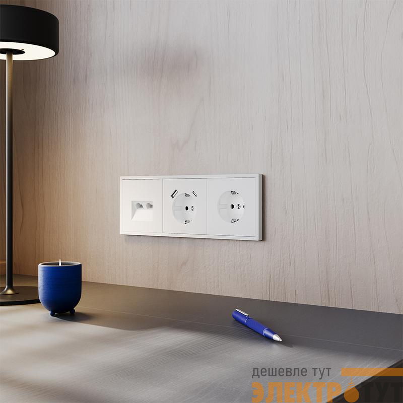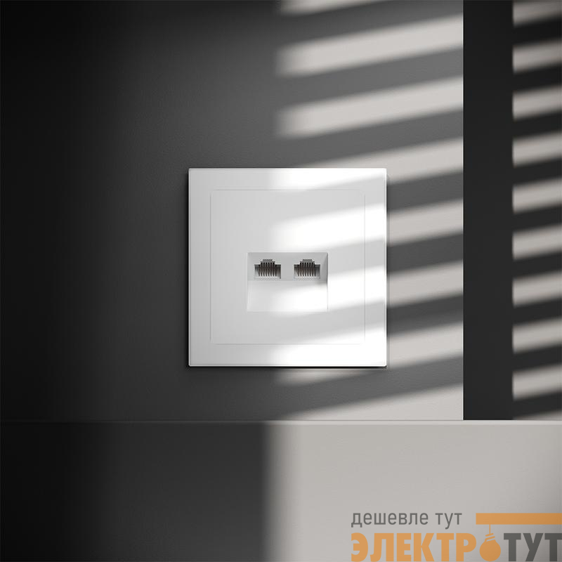 Место установки. Компьютерные розетки применяются в домашних и офисных сетях для подключения персонального компьютера, принтера, роутера или любого другого сетевого устройства к современным информационным системам. Корпус. Розетка выполнена в фирменной стилистике Voltum. Внешние материалы — это поликарбонат высокой прочности. Устройство оборудовано специальным сетевым разъемом (или сразу двумя у модели RJ45+RJ45). Конструктивные особенности. Компьютерная розетка RJ45 совместима с информационными сетями шестого поколения со скоростью передачи данных до 1000 Мбит/сек. Также она поддерживает стандарт 5e. Подключение к конечному устройству выполняется через сетевой кабель (витую пару)