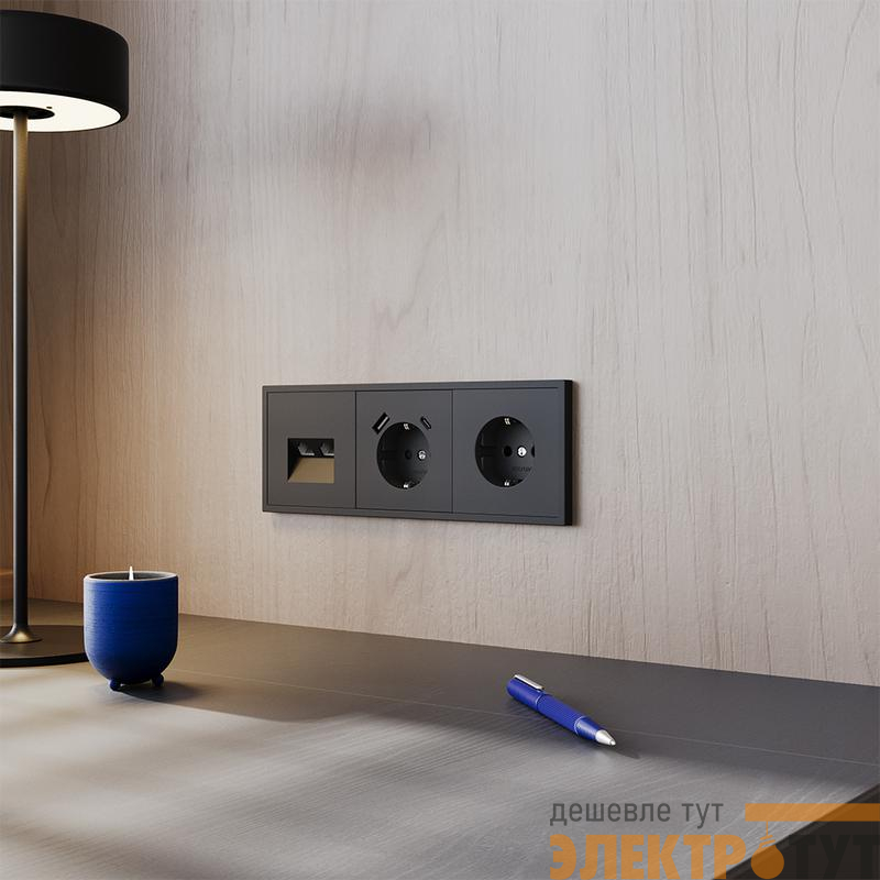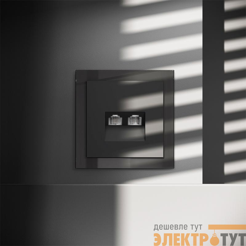 VLS060208 | Розетка компьютерная 2-м СП S70 RJ45 + RJ45 кат.6 механизм черн. матов. Voltum