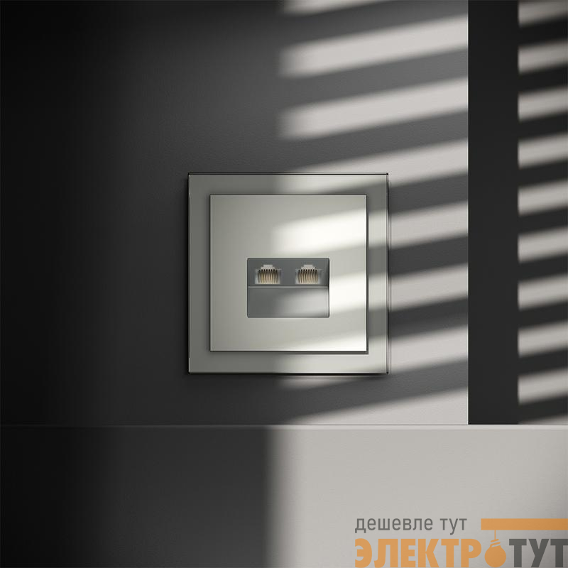 Место установки. Компьютерные розетки применяются в домашних и офисных сетях для подключения персонального компьютера, принтера, роутера или любого другого сетевого устройства к современным информационным системам. Корпус. Розетка выполнена в фирменной стилистике Voltum. Внешние материалы — это поликарбонат высокой прочности. Устройство оборудовано специальным сетевым разъемом (или сразу двумя у модели RJ45+RJ45). Конструктивные особенности. Компьютерная розетка RJ45 совместима с информационными сетями шестого поколения со скоростью передачи данных до 1000 Мбит/сек. Также она поддерживает стандарт 5e. Подключение к конечному устройству выполняется через сетевой кабель (витую пару)