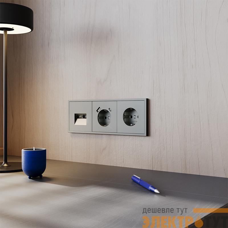 Место установки. Компьютерные розетки применяются в домашних и офисных сетях для подключения персонального компьютера, принтера, роутера или любого другого сетевого устройства к современным информационным системам. Корпус. Розетка выполнена в фирменной стилистике Voltum. Внешние материалы — это поликарбонат высокой прочности. Устройство оборудовано специальным сетевым разъемом (или сразу двумя у модели RJ45+RJ45). Конструктивные особенности. Компьютерная розетка RJ45 совместима с информационными сетями шестого поколения со скоростью передачи данных до 1000 Мбит/сек. Также она поддерживает стандарт 5e. Подключение к конечному устройству выполняется через сетевой кабель (витую пару)