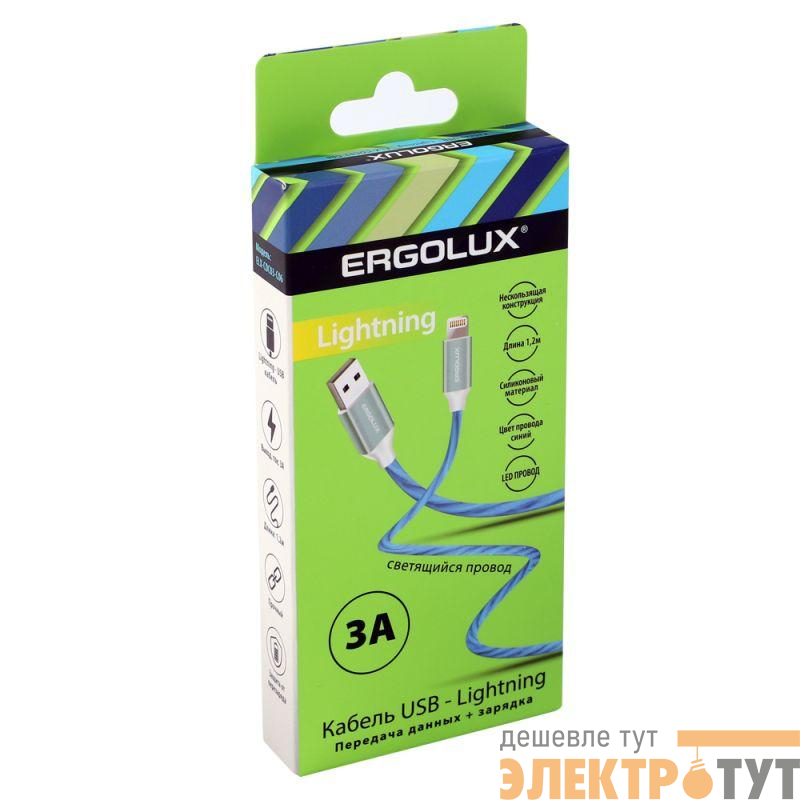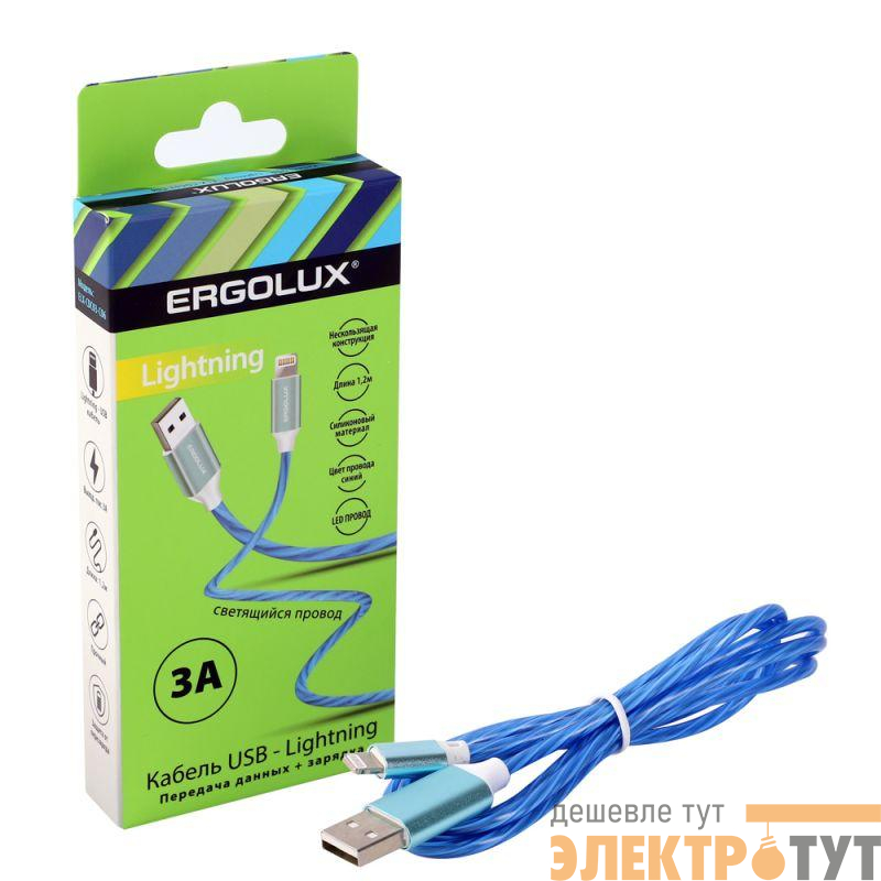 15306 | Кабель USB-Lightning ELX-CDC03-C06 3А 1.2м LED зарядка+передача данных коробка син. Ergolux
