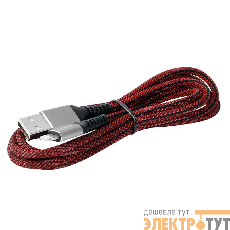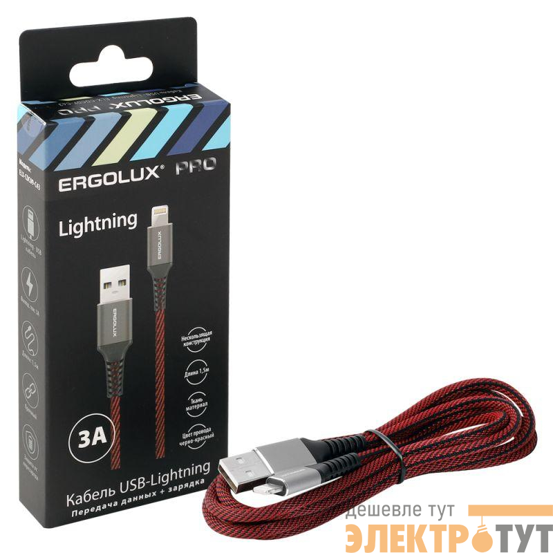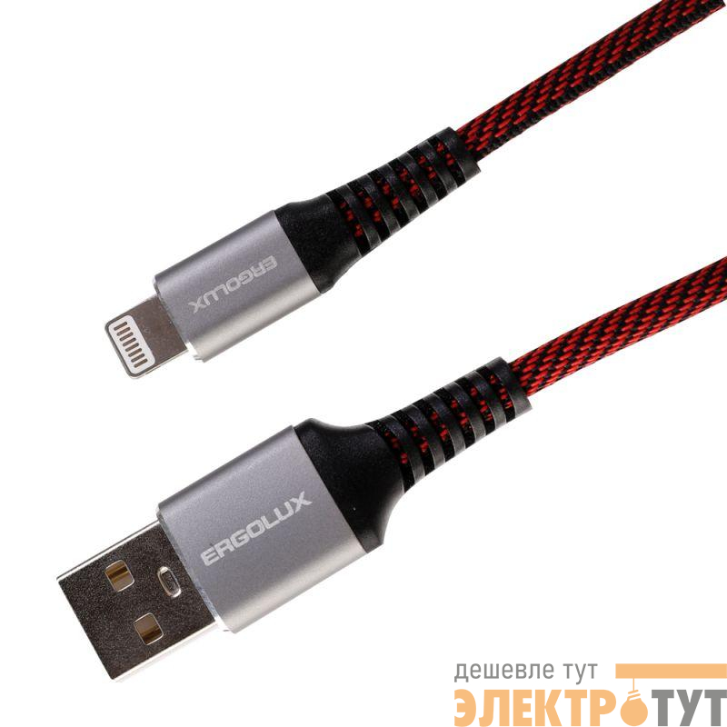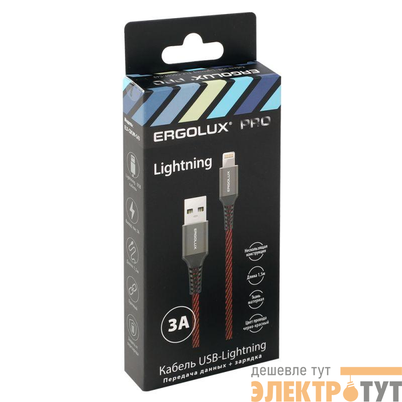 15310 | Кабель USB-Lightning ELX-CDC09-C43 3А 1.5м черн./красн. ткань зарядка+ПД коробка Ergolux