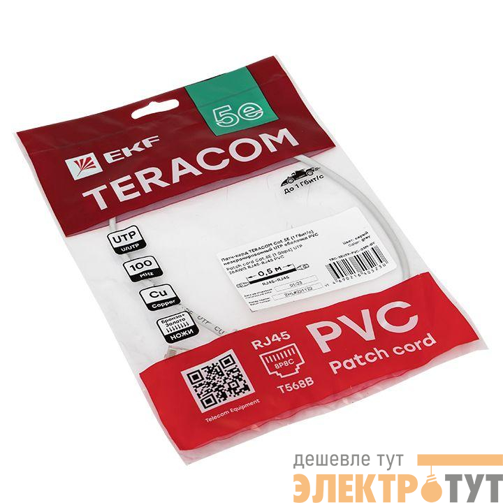 TRC-5EUTP-PVC-05M-GY | Патч-корд кат.5E UTP неэкранир. PVC 1Гбит/с 0.5м сер. TERACOM EKF