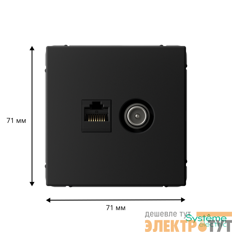 Механизм Systeme Electric серии ArtGallery в цвете карбон двойной розетки разъёмами RJ45 категория 5е и TV предназначен для удобного и быстрого подключения вашего компьютера и телевизора к соответствующим сетям.