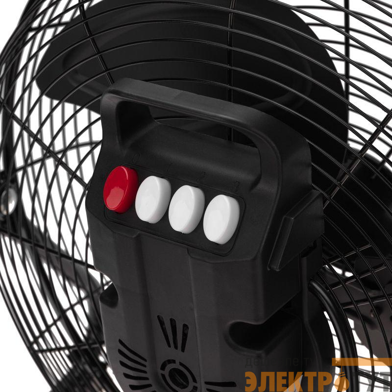 Вентилятор оснащен 3-ступенчатой регулировкой скоростей, что позволяет выбрать оптимальный режим работы. Прочный и надежный металлический корпус изделия устойчив к деформации и внешним повреждениям.
