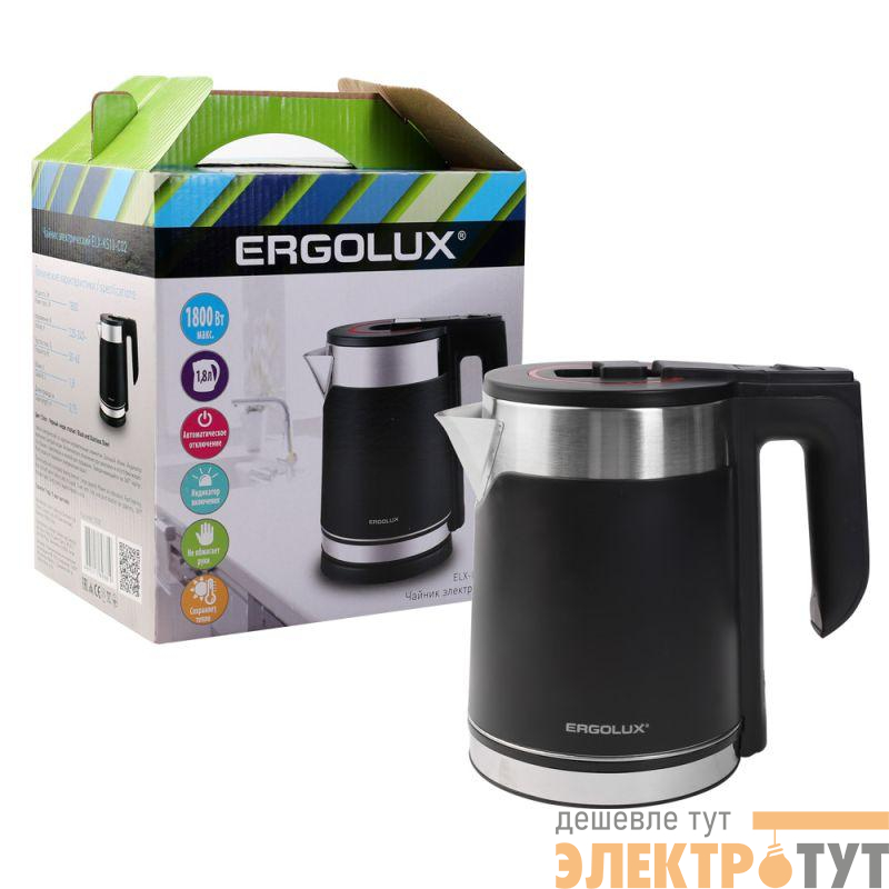 15328 | Чайник электрический ELX-KS10-C02 нерж. сталь/пластик 1.8л 220-240В 1800Вт черн. Ergolux