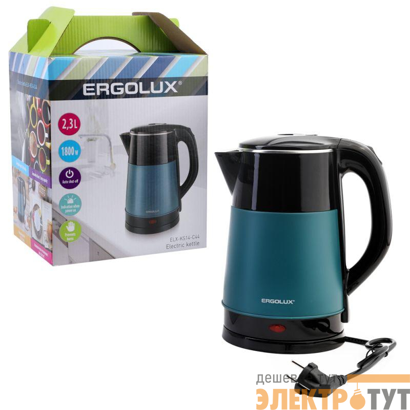 15332 | Чайник электрический ELX-KS14-C44 нерж.сталь/пластик 2.3л 220-240В 1800Вт черн./зел. ERGOLUX