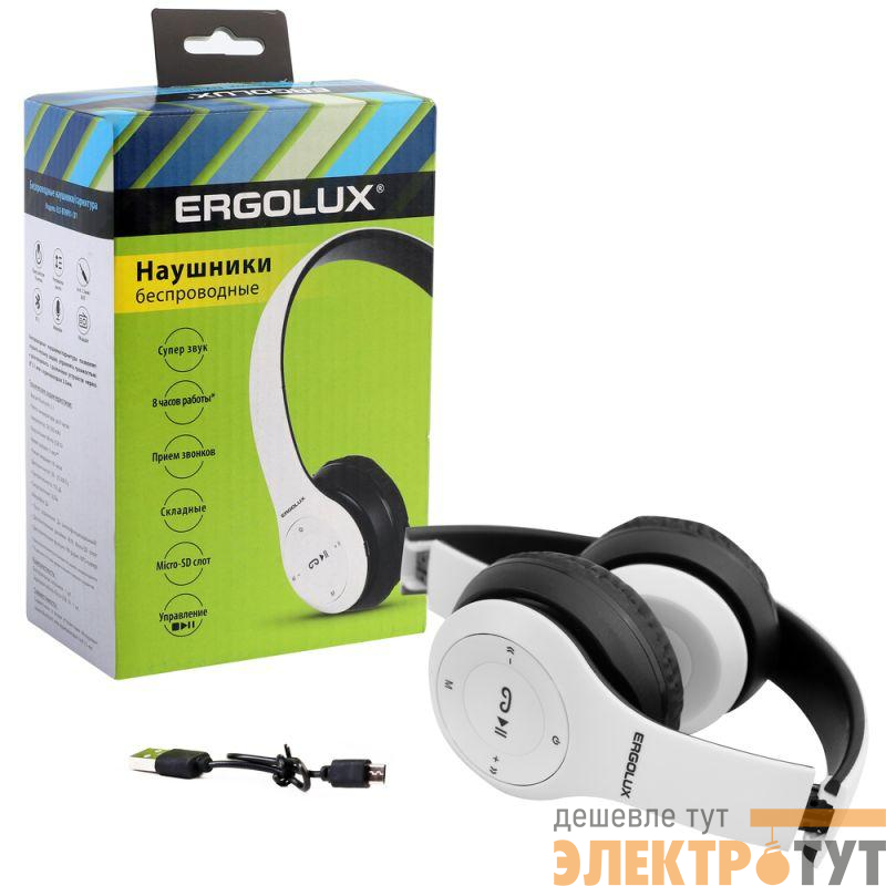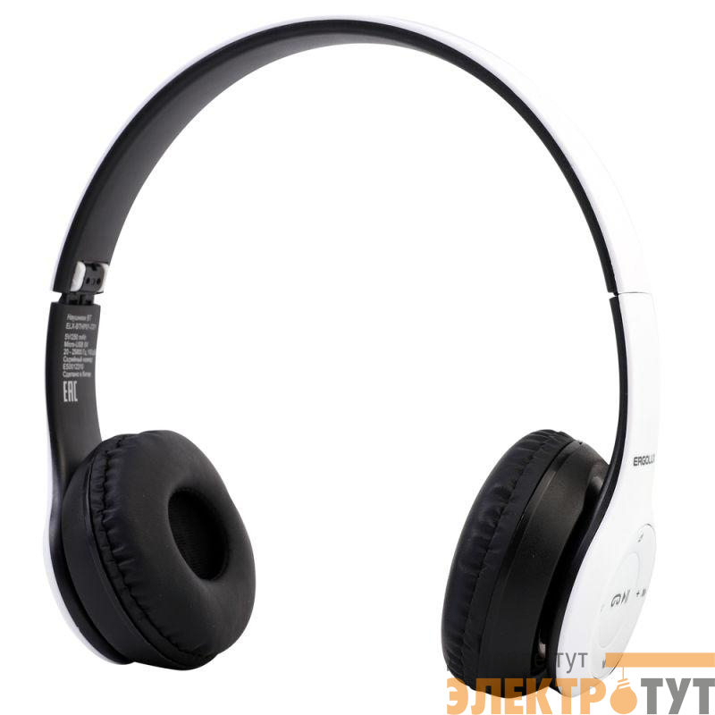 15356 | Наушники накладные с микрофоном беспроводные ELX-BTHP01-C01 FM MP3 коробка бел. ERGOLUX