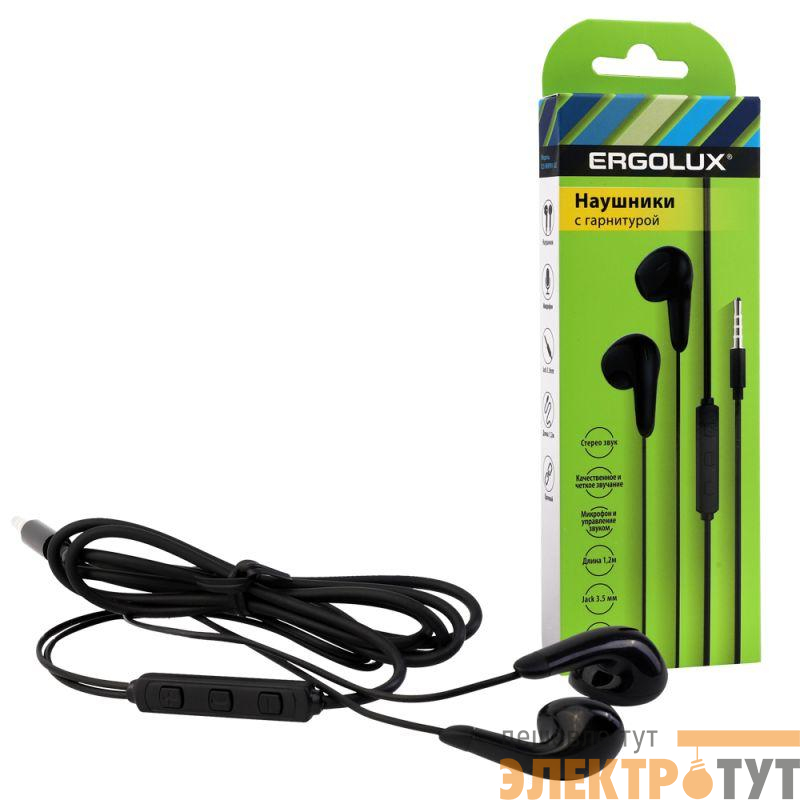 15282 | Наушники вкладыши с микрофоном проводные ELX-WHP01-C02 3.5мм 1.2м коробка черн. Ergolux