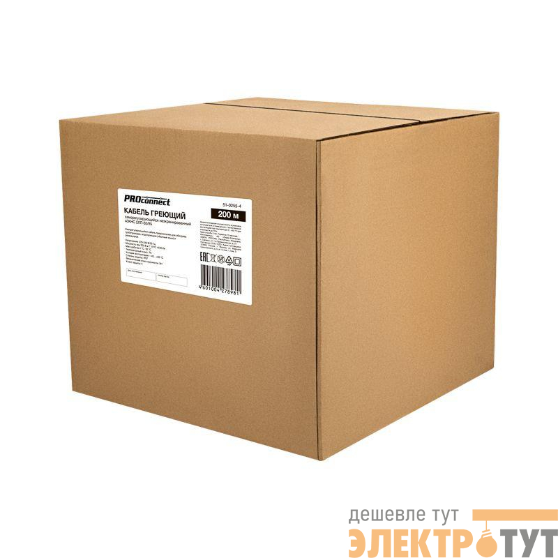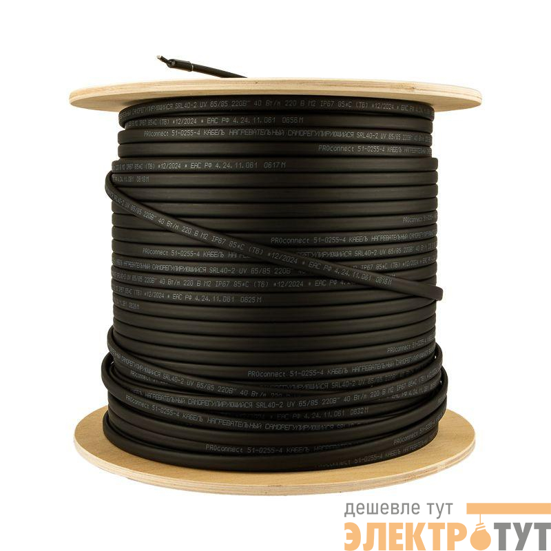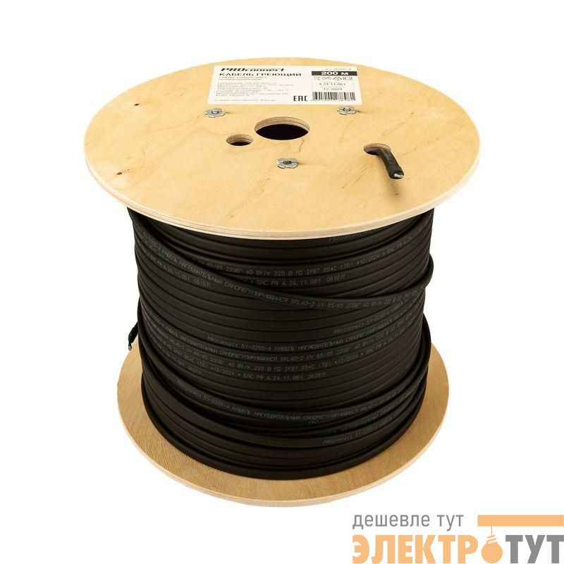 51-0255-4 | Кабель греющий саморег. для труб водостоков крыш 40КНС-2ЛП-65/85 UV неэкранированный 40Вт/м 200м PROCONNECT