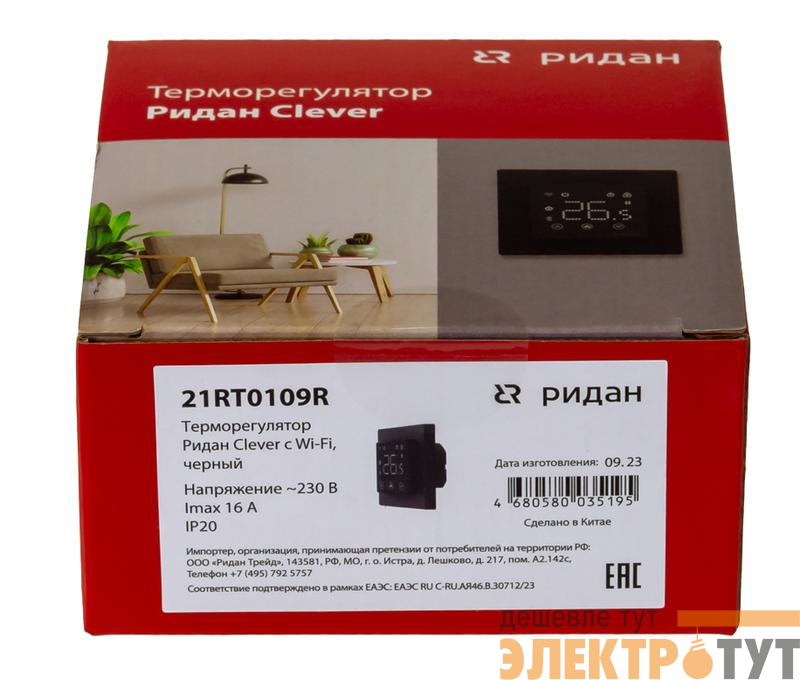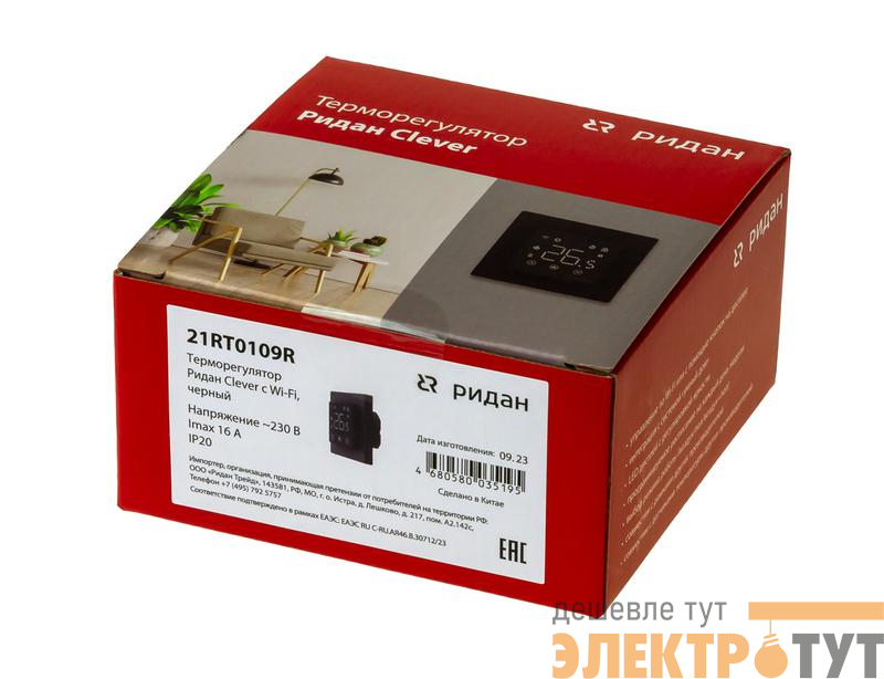 21RT0109R | Терморегулятор Clever с Wi-Fi с комбинацией датчиков 16А черн. Ридан