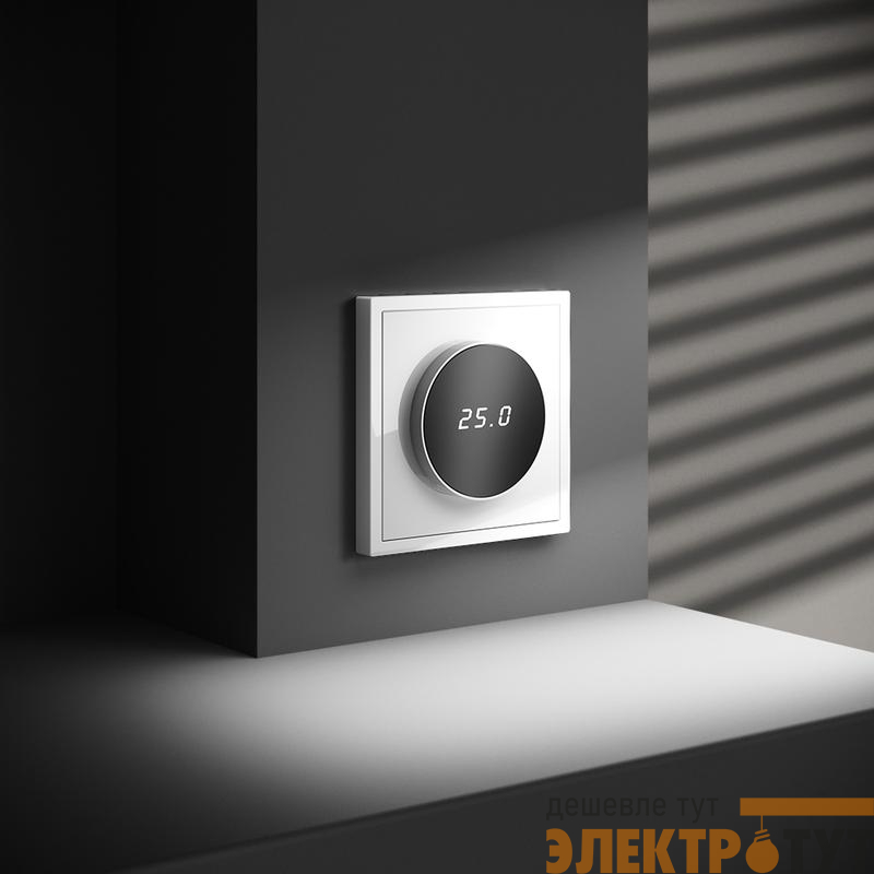 Место установки. Терморегуляторы Voltum предназначены для регулирования температуры теплого пола. Актуальны как в городских квартирах, так и в загородных дачных домах без центрального отопления. Корпус. Дизайн терморегуляторов Voltum сочетается со стилем остальных электрических устройств компании. Они совместимы со всеми рамками. Материал внешних декоративных элементов — поликарбонат. Конструктивные особенности. Терморегуляторы работают с любыми типами теплых полов и рассчитаны на нагрузку до 3500 Вт. Устройства оснащены светодиодной индикацией режима и дисплеем, на котором отображается температура поверхности пола. Красный индикатор — «подача питания на нагревательный кабель (идет процесс нагрева)», отсутствие индикации — «заданная температура достигнута». В течение 15 минут после нагрева терморегулятор переходит в интеллектуальный «спящий режим», уменьшая яркость подсветки цифр и сокращая энергопотребление. Регулировка осуществляется вращением панели управления. Терморегулятор поставляется в комплекте с механизмом из пластиковой накладки и датчиком температуры.