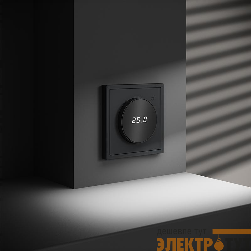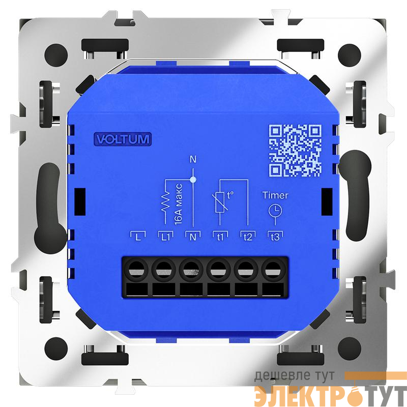 Место установки. Терморегуляторы Voltum предназначены для регулирования температуры теплого пола. Актуальны как в городских квартирах, так и в загородных дачных домах без центрального отопления. Корпус. Дизайн терморегуляторов Voltum сочетается со стилем остальных электрических устройств компании. Они совместимы со всеми рамками. Материал внешних декоративных элементов — поликарбонат. Конструктивные особенности. Терморегуляторы работают с любыми типами теплых полов и рассчитаны на нагрузку до 3500 Вт. Устройства оснащены светодиодной индикацией режима и дисплеем, на котором отображается температура поверхности пола. Красный индикатор — «подача питания на нагревательный кабель (идет процесс нагрева)», отсутствие индикации — «заданная температура достигнута». В течение 15 минут после нагрева терморегулятор переходит в интеллектуальный «спящий режим», уменьшая яркость подсветки цифр и сокращая энергопотребление. Регулировка осуществляется вращением панели управления. Терморегулятор поставляется в комплекте с механизмом из пластиковой накладки и датчиком температуры.