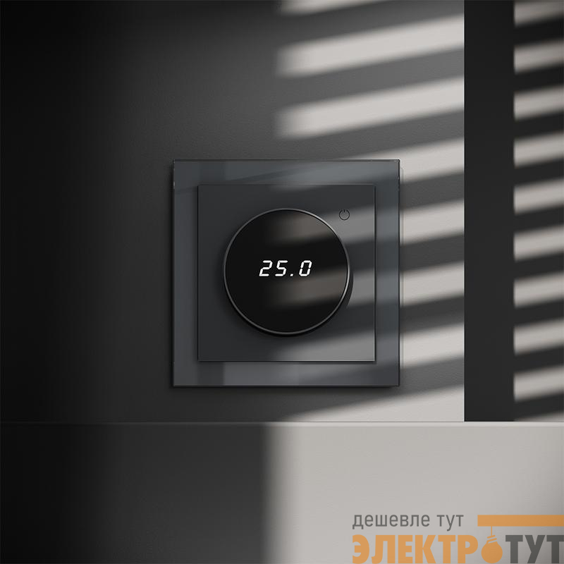 VLS070107 | Терморегулятор электронный S70 с индикацией и датчиком для теплого пола механизм графит Voltum