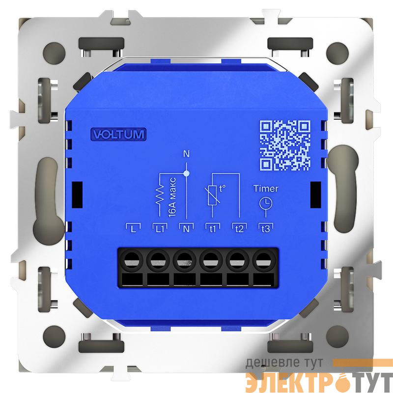 Место установки. Терморегуляторы Voltum предназначены для регулирования температуры теплого пола. Актуальны как в городских квартирах, так и в загородных дачных домах без центрального отопления. Корпус. Дизайн терморегуляторов Voltum сочетается со стилем остальных электрических устройств компании. Они совместимы со всеми рамками. Материал внешних декоративных элементов — поликарбонат. Конструктивные особенности. Терморегуляторы работают с любыми типами теплых полов и рассчитаны на нагрузку до 3500 Вт. Устройства оснащены светодиодной индикацией режима и дисплеем, на котором отображается температура поверхности пола. Красный индикатор — «подача питания на нагревательный кабель (идет процесс нагрева)», отсутствие индикации — «заданная температура достигнута». В течение 15 минут после нагрева терморегулятор переходит в интеллектуальный «спящий режим», уменьшая яркость подсветки цифр и сокращая энергопотребление. Регулировка осуществляется вращением панели управления. Терморегулятор поставляется в комплекте с механизмом из пластиковой накладки и датчиком температуры.