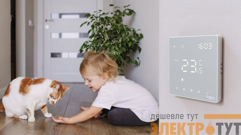 Термостат для электрического теплого пола Systeme Electric серии ArtGallery в белом цвете с Wi-Fi, 16 А