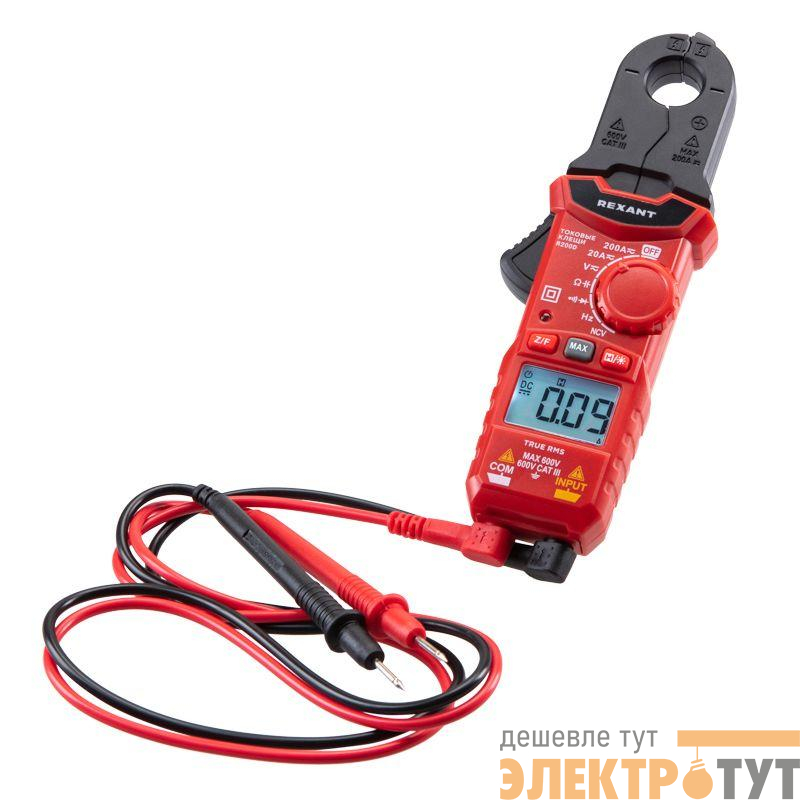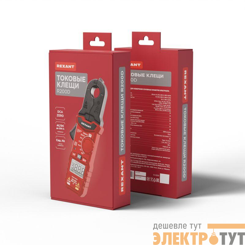 Многофункциональные компактные цифровые токовые клещи R200D REXANT– это прибор, который позволяет измерить постоянный и переменный ток до 200A, емкость, частоты и т.д.
