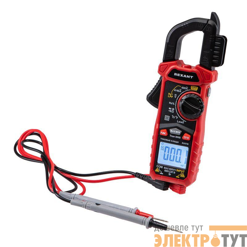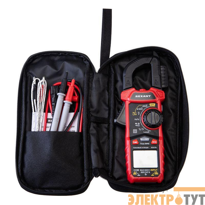Многофункциональные цифровые токовые клещи R207B REXANT – это прибор профессионального уровня, который позволяет измерять емкость, частоты, температуру и скважность.