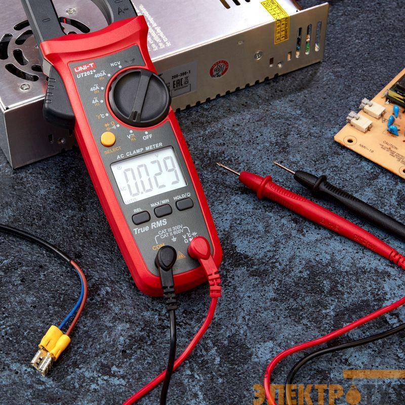 Токоизмерительные TRUE RMS цифровые клещи UNI-T UT202+ являются обновлением модели 202. С их помощью измеряется переменный ток, постоянное и переменное напряжение до 600В, сопротивление, емкость и температуру контактным методом. Имеют удобное управление с отображением данных на экране.
