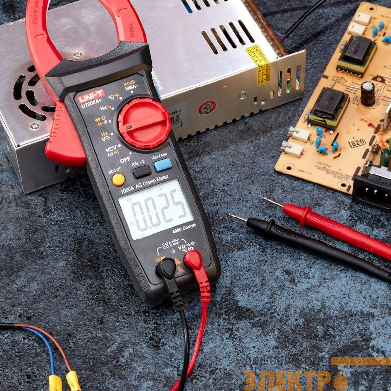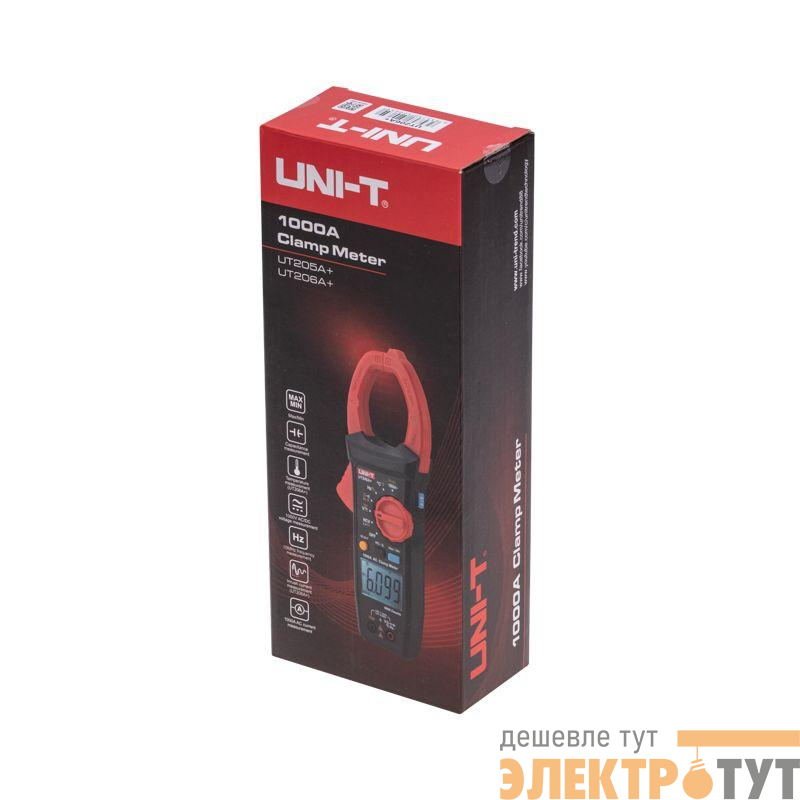 Токоизмерительные цифровые клещи UNI-T UT206А+ являются обновлением модели 206. С их помощью измеряется переменный ток до 1000А и пусковой ток до 600А, постоянное и переменное напряжение до 1000В, сопротивление, емкость и температуру контактным методом.
