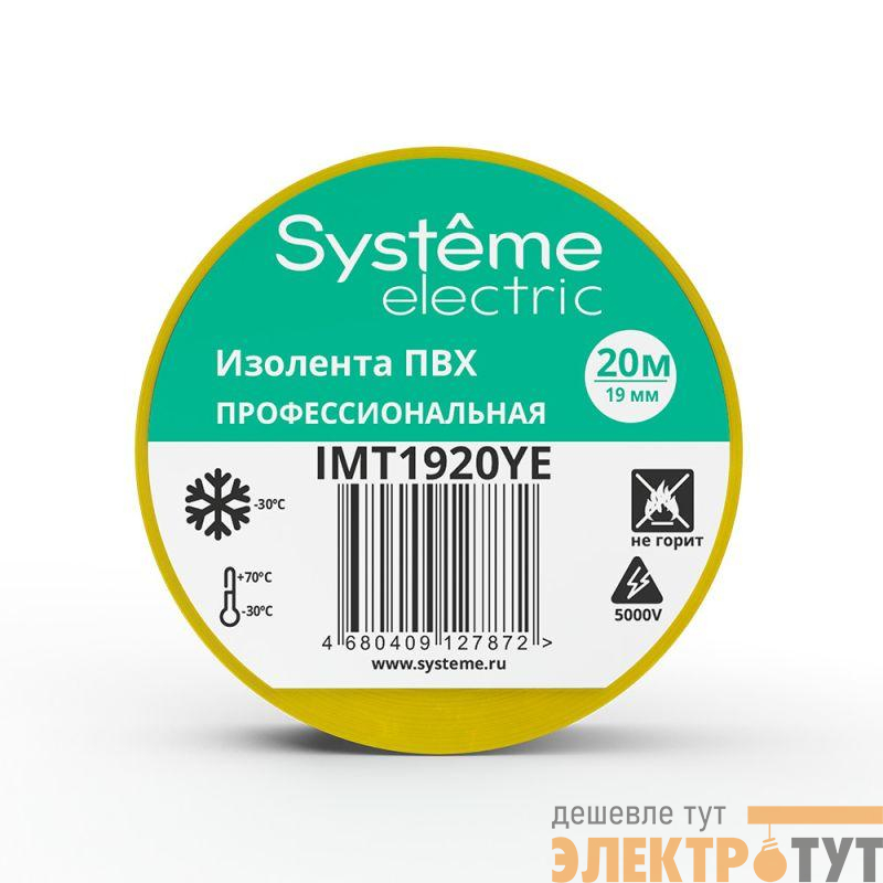 Изолента Systeme Electric серии MultiSet в желтом цвете предназначена для изоляции электрических соединений и проводов.