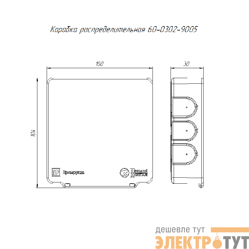 60-0302-9005 | Коробка распределительная 100х100х30 (HF) двухкомп. Безгалоген. для прям. монтажа черн. (уп.48шт) Промрукав