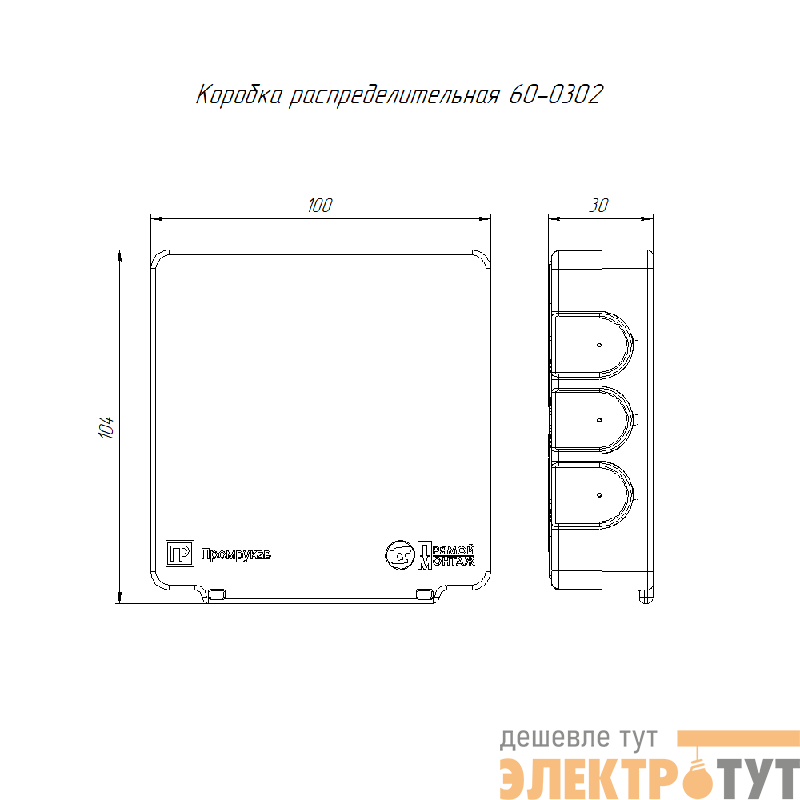 60-0302 | Коробка распределительная ОП 100х100х30 (HF) для прям. монтажа двухкомп. безгалоген. (уп.48шт) Промрукав