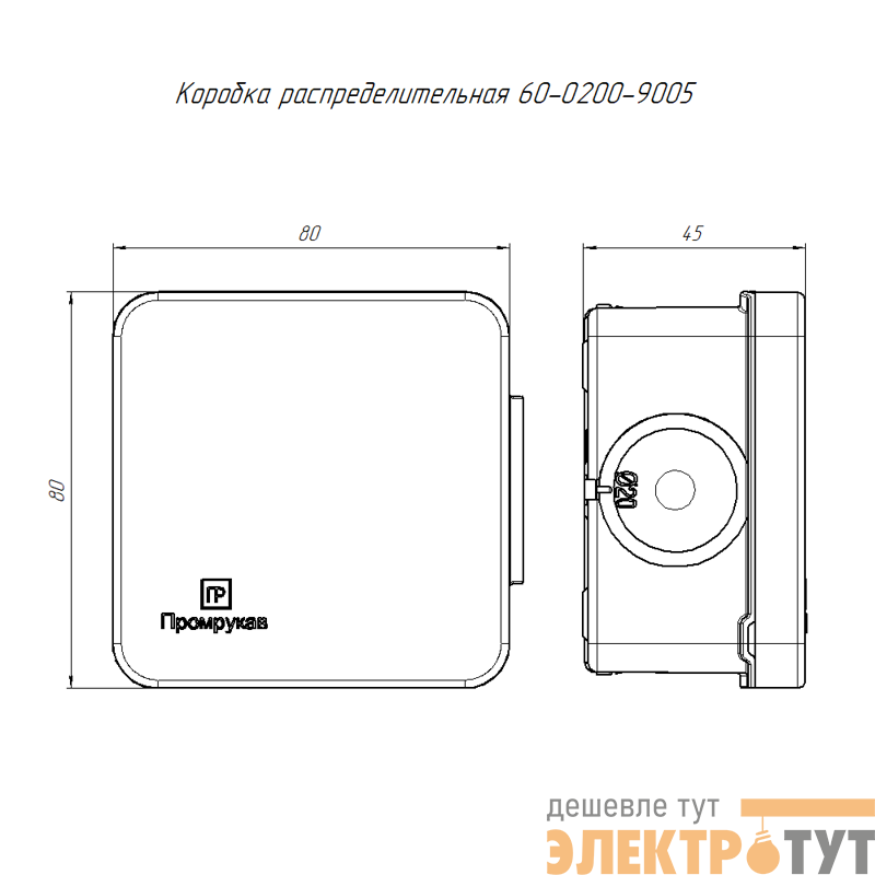 60-0200-9005 | Коробка распределительная ОП 70х70х40мм двухкомпонентн. безгалоген. (HF) для прямого монтажа черн. Промрукав