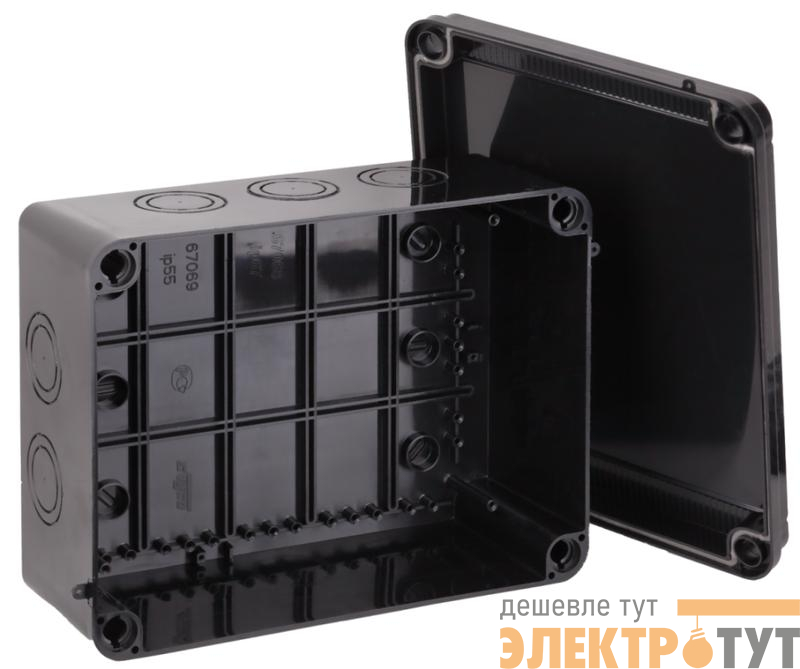 67068Ч | Коробка Тусо распаячная для ОП 300х220х120мм без гермовводов УХЛ1 IP67 черн. Ruvinil
