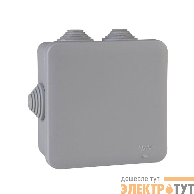 КОРОБКА РАСПРЕДЕЛИТЕЛЬНАЯ ОТКРЫТОЙ УСТАНОВКИ, внутренние размеры 100X100X50 мм, габариты 130х130х58 мм, степень пылевлагозащиты IP55, 6 сальников, со стикером, цвет-серый