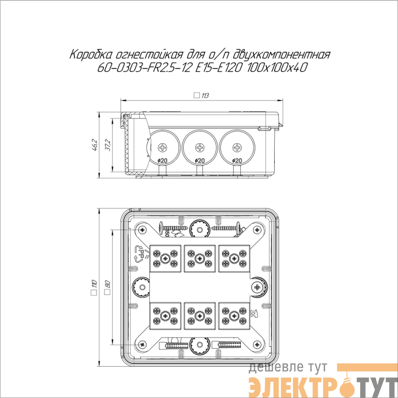 60-0303-FR2.5-12 | Коробка коммутационная огнестойкая 100х100х40 E15-E120 Промрукав