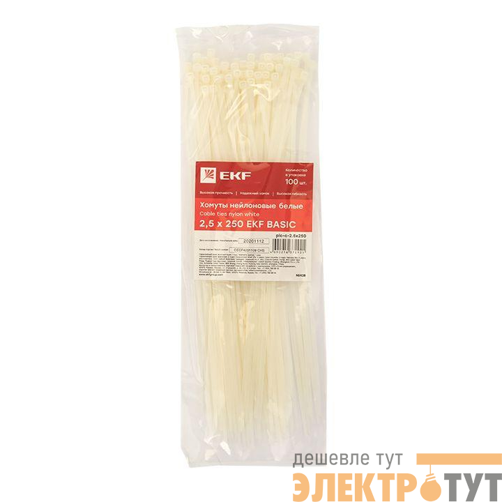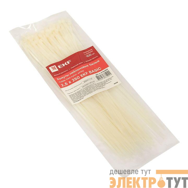 plc-c-2.5x250 | Хомут кабельный 2.5х250 нейл. (уп.100шт) Basic EKF