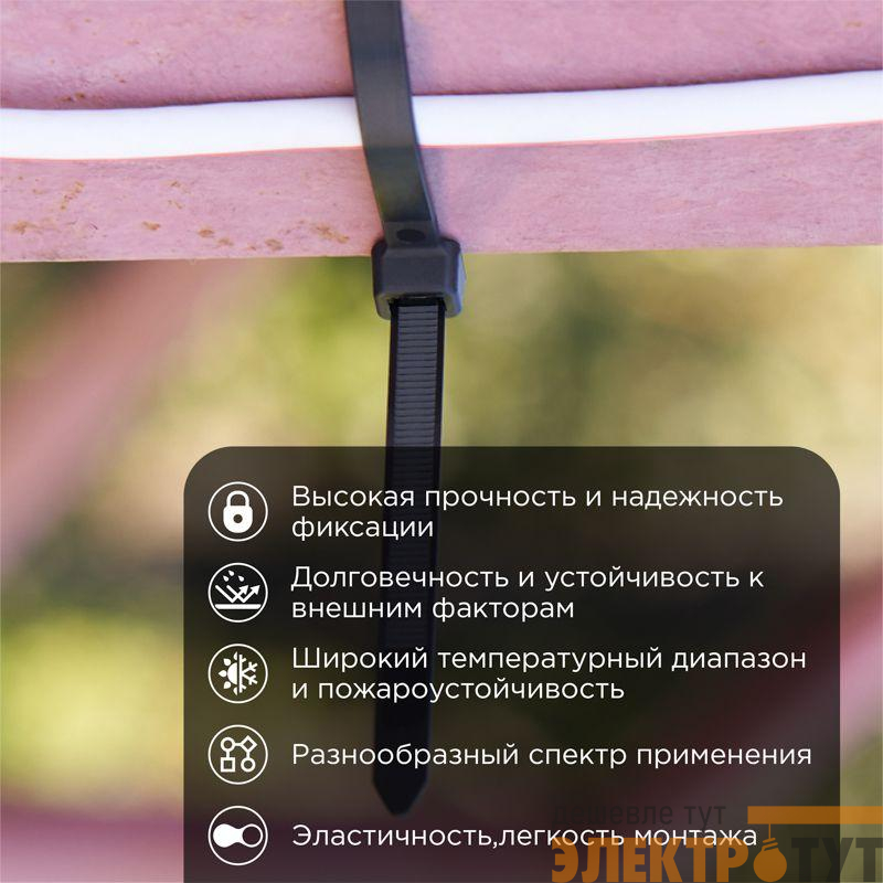 Нейлоновая стяжка REXANT отличается надежной фиксацией, прочностью и устойчивостью к внешним воздействиям. Изделие является экологически чистым продуктом, не содержит галогенов.