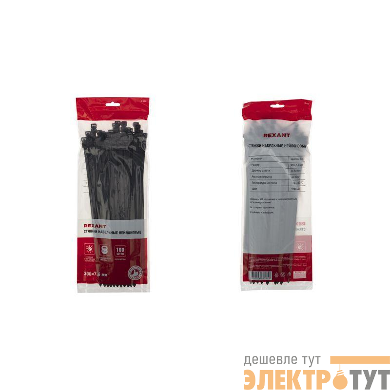 В упаковке поставляются 100 стяжек размером 300x7,6 мм.