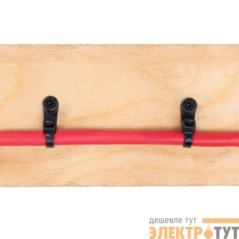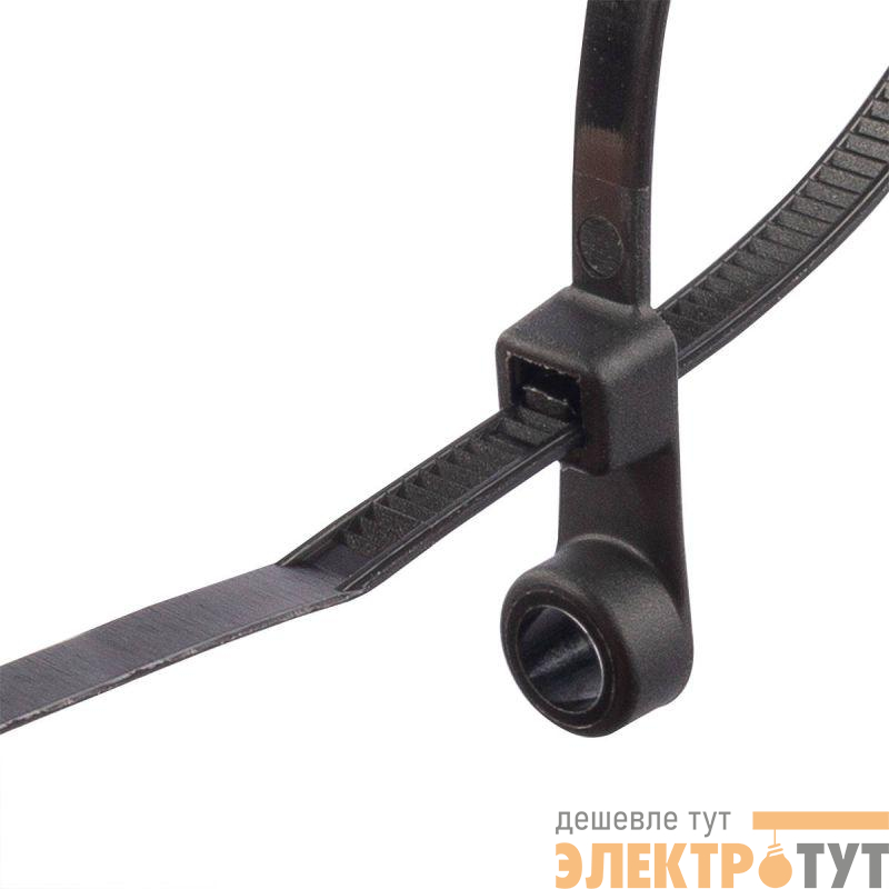 • Конец стяжки имеет конструктивное отверстие для крепежа хомута к рабочей поверхности при помощи саморезов