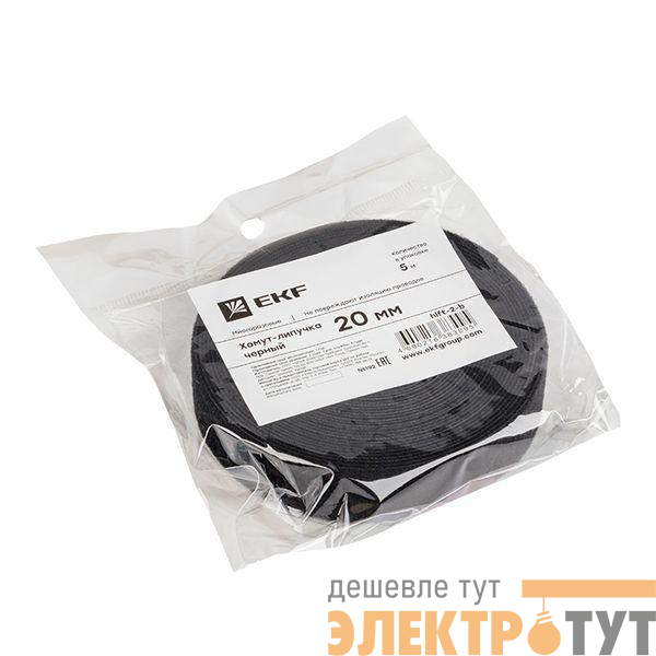 hlft-2-b | Хомут-липучка 20мм черн. (5м/ролл) PROxima EKF