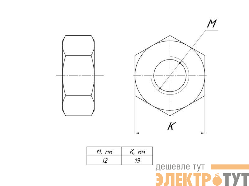 g6grm12 | Гайка шестигранная М12 (уп.50шт) EKF