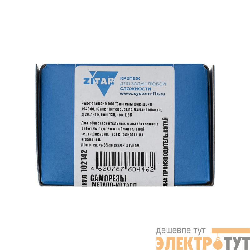 102142 | Саморез для тонкого метал. листа 4.2х32 (коробка) (уп.200шт) Zitar