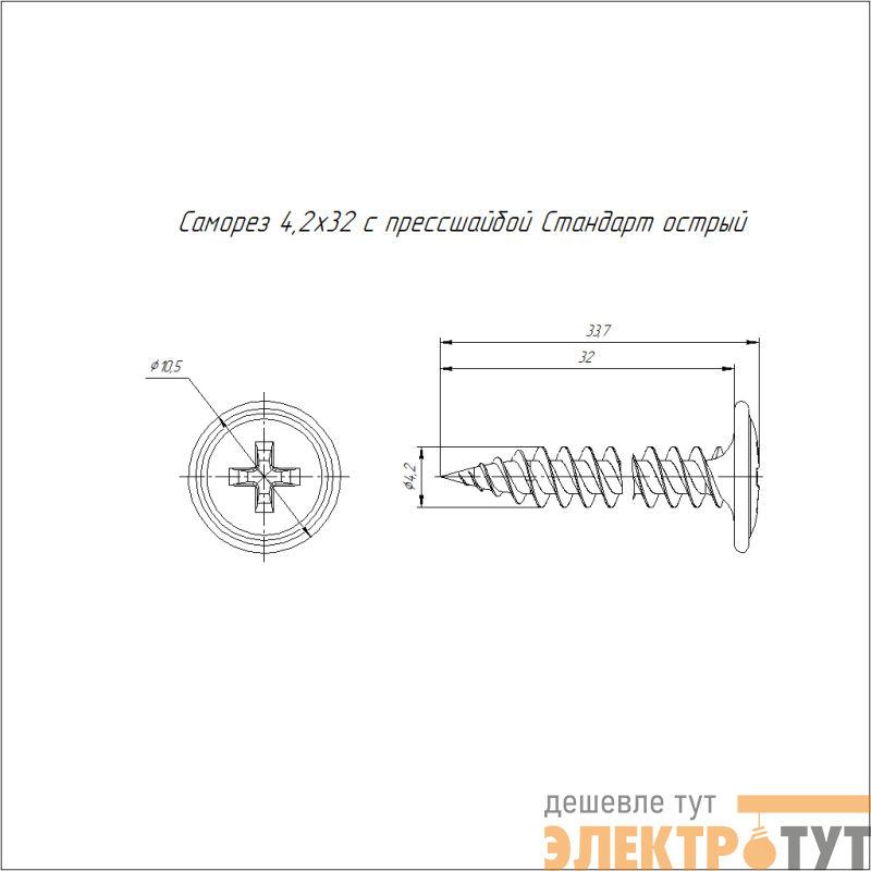 PR08.3649 | Саморез 4.2х32 с прессшайбой острый цинк (уп.500шт) Промрукав