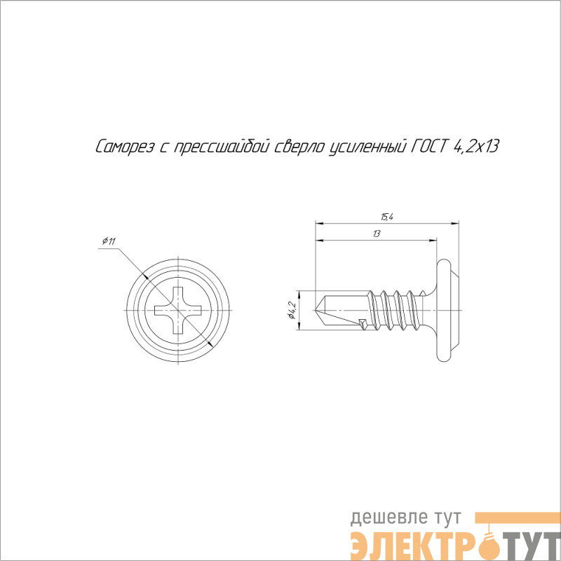 PR17.00324 | Саморез с прессшайбой сверло усиленный 4.2х13 (уп.500шт) Промрукав