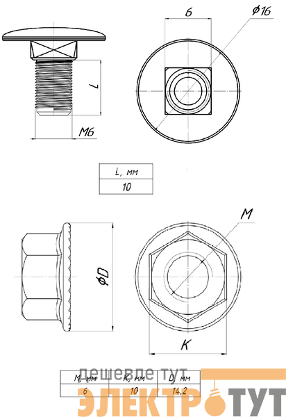 wgm6x10-TDZ | Комплект соединительный 6х10 (винт М6 +гайка) TDZ (уп.200шт) EKF