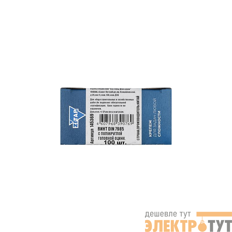 145369 | Винт с полукруглой головкой М6х10 DIN 7985 оцинк. (уп.100шт) Zitar